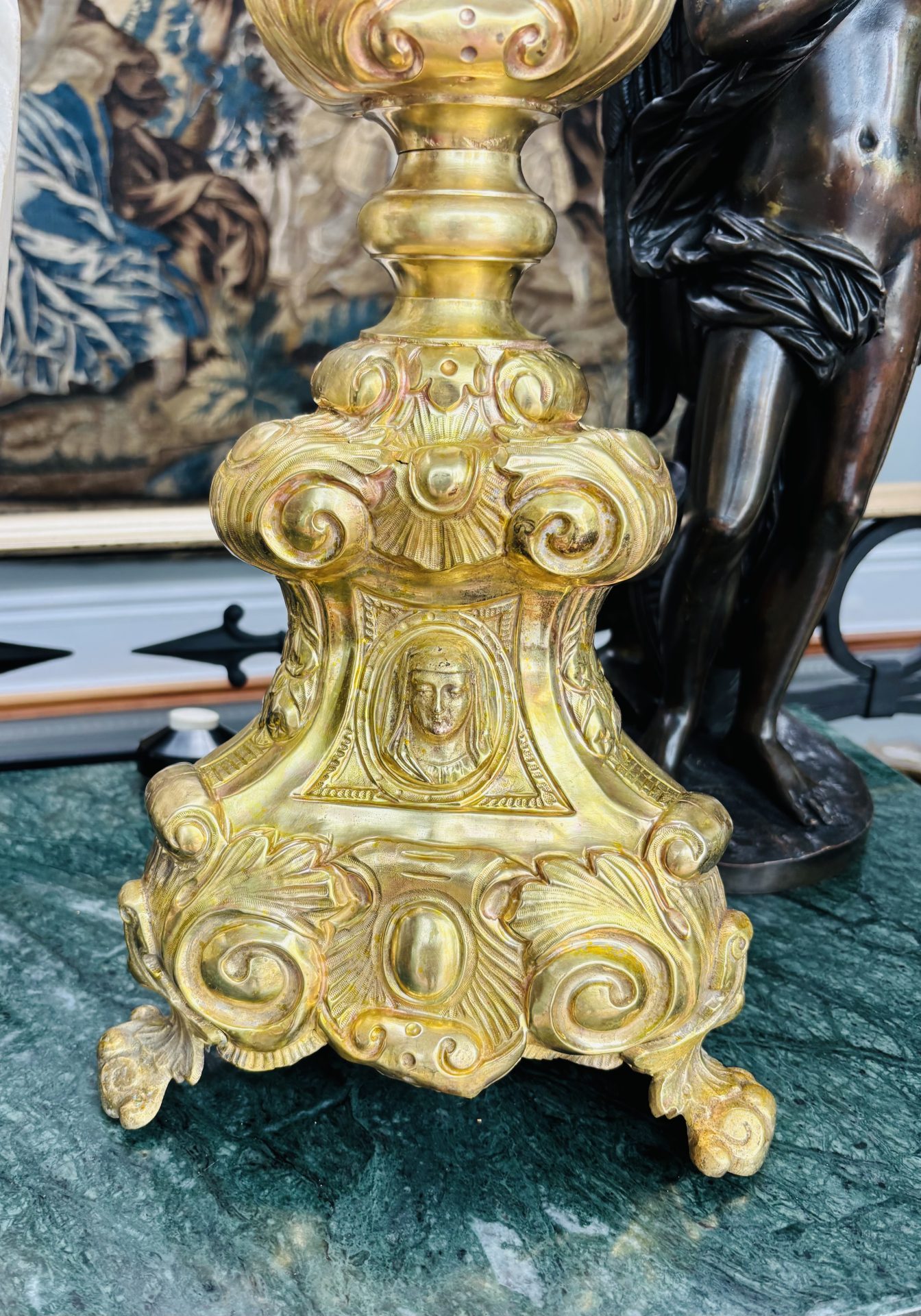 19thC French Ecclesiastical Candlestick Converted to a Lamp
