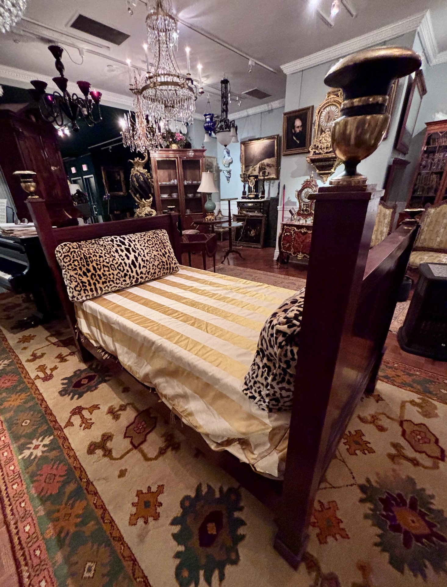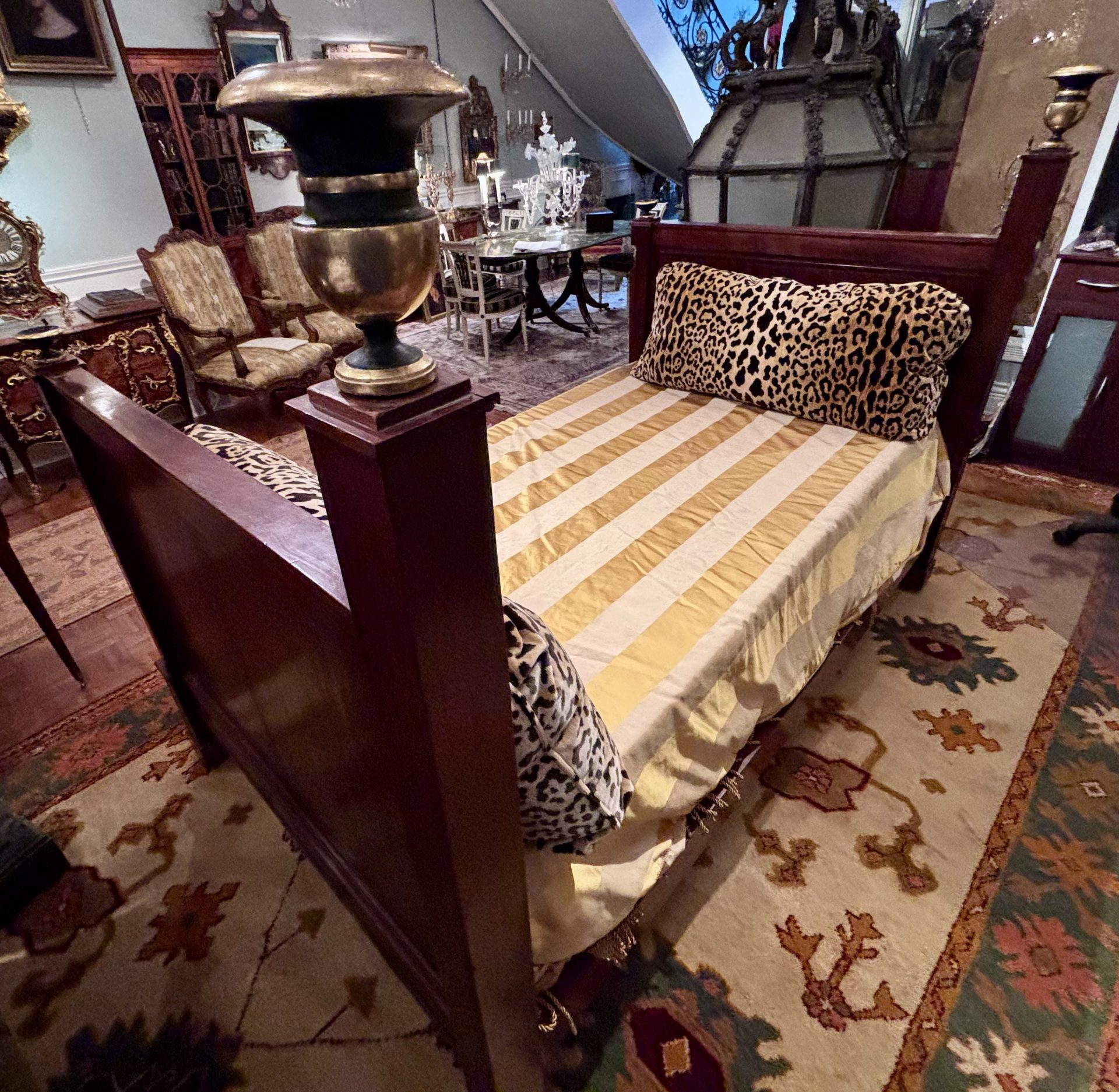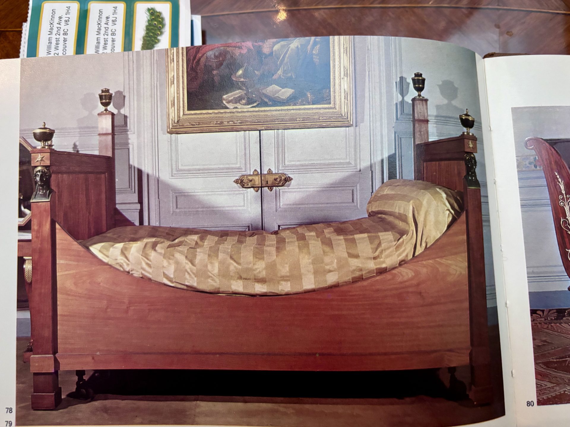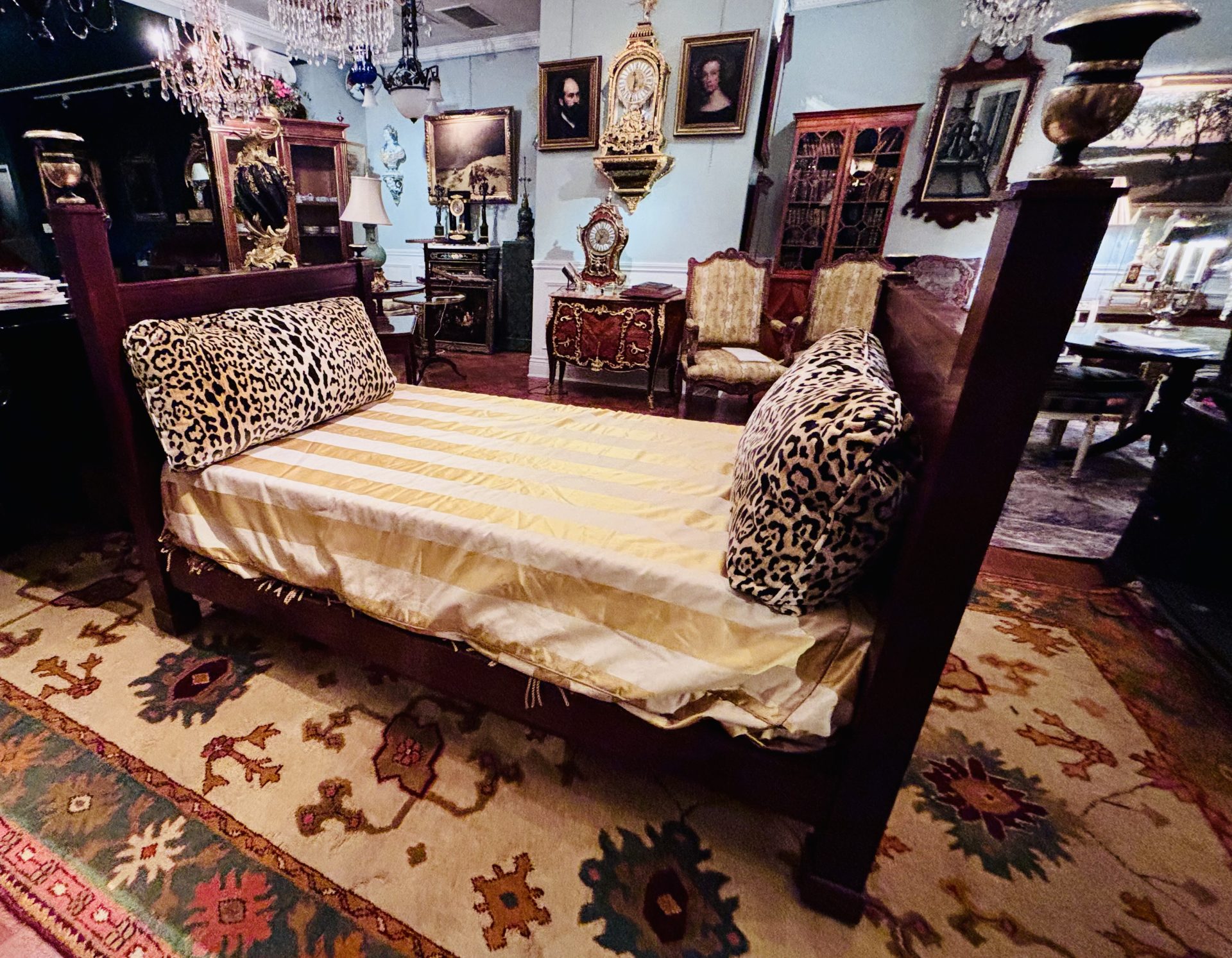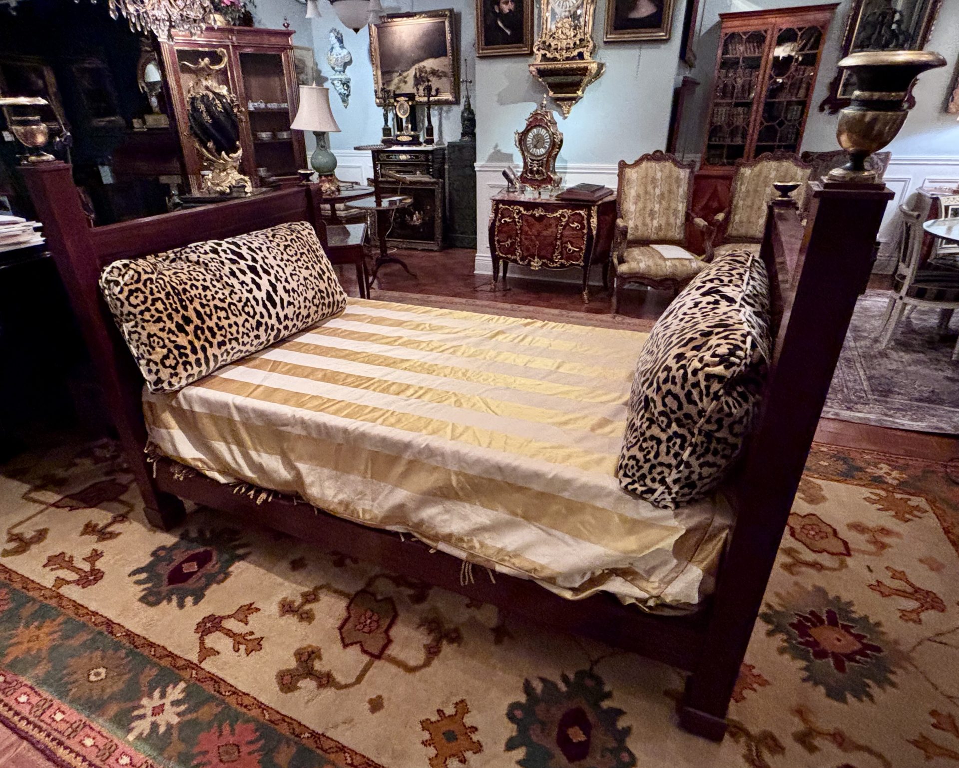 Examples of almost identical beds are displayed in one of Napoleon’s bedrooms at Malmaison and in another bedroom dedicated to the Empire Period at the Palace of Fontainbleu. Refer to last two photos in the photo gallery. France Circa 1810