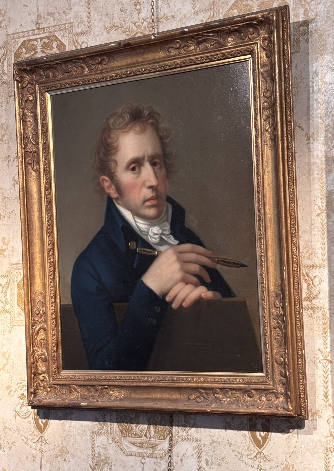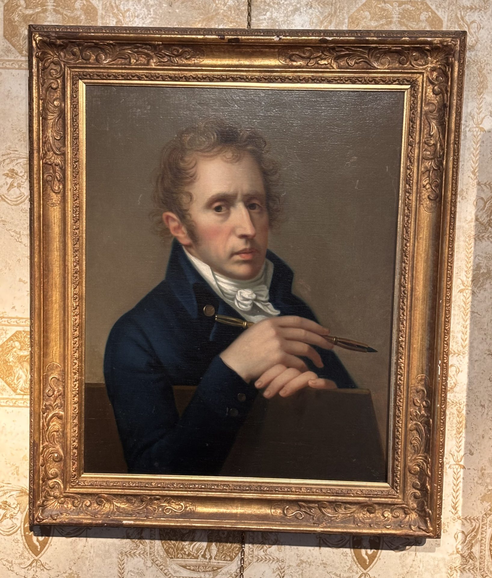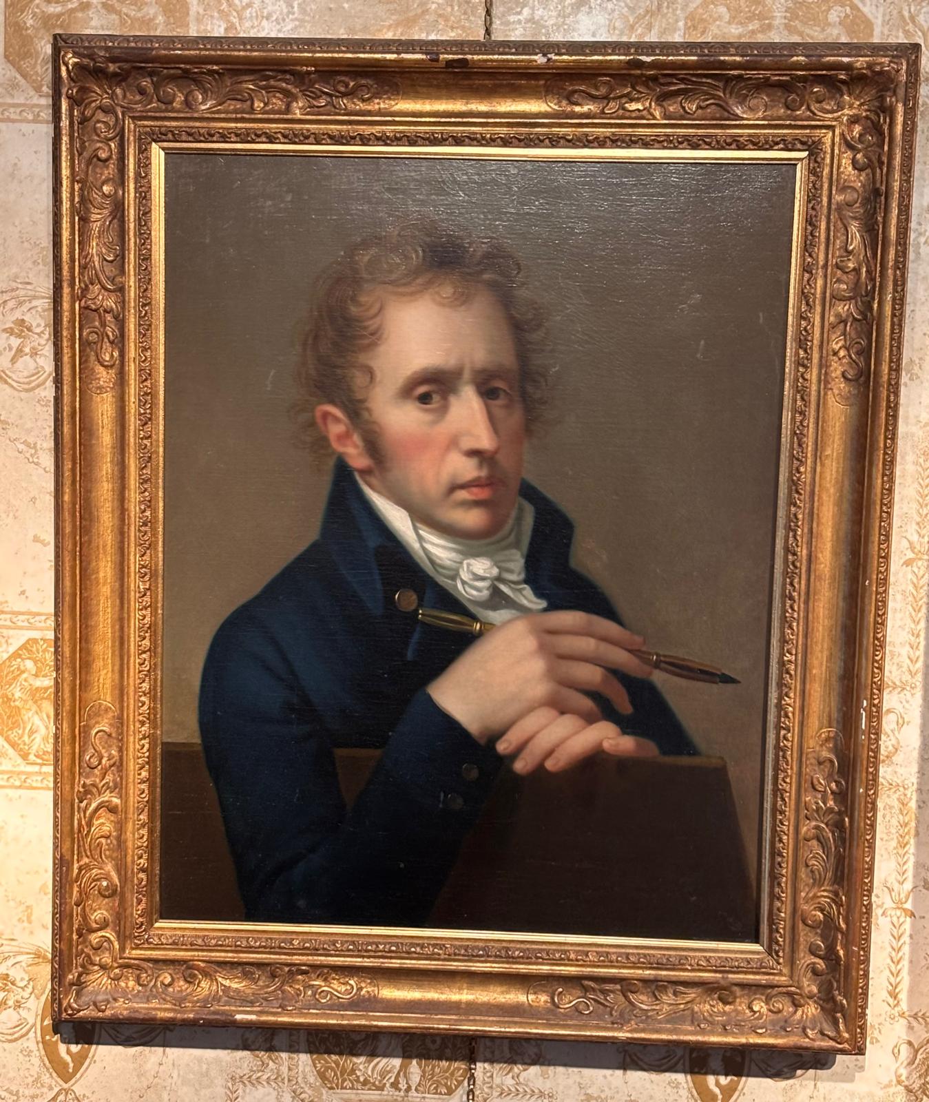 French 19 Century Portrait of a Scholar, Poet or a Writer Holding a Pen