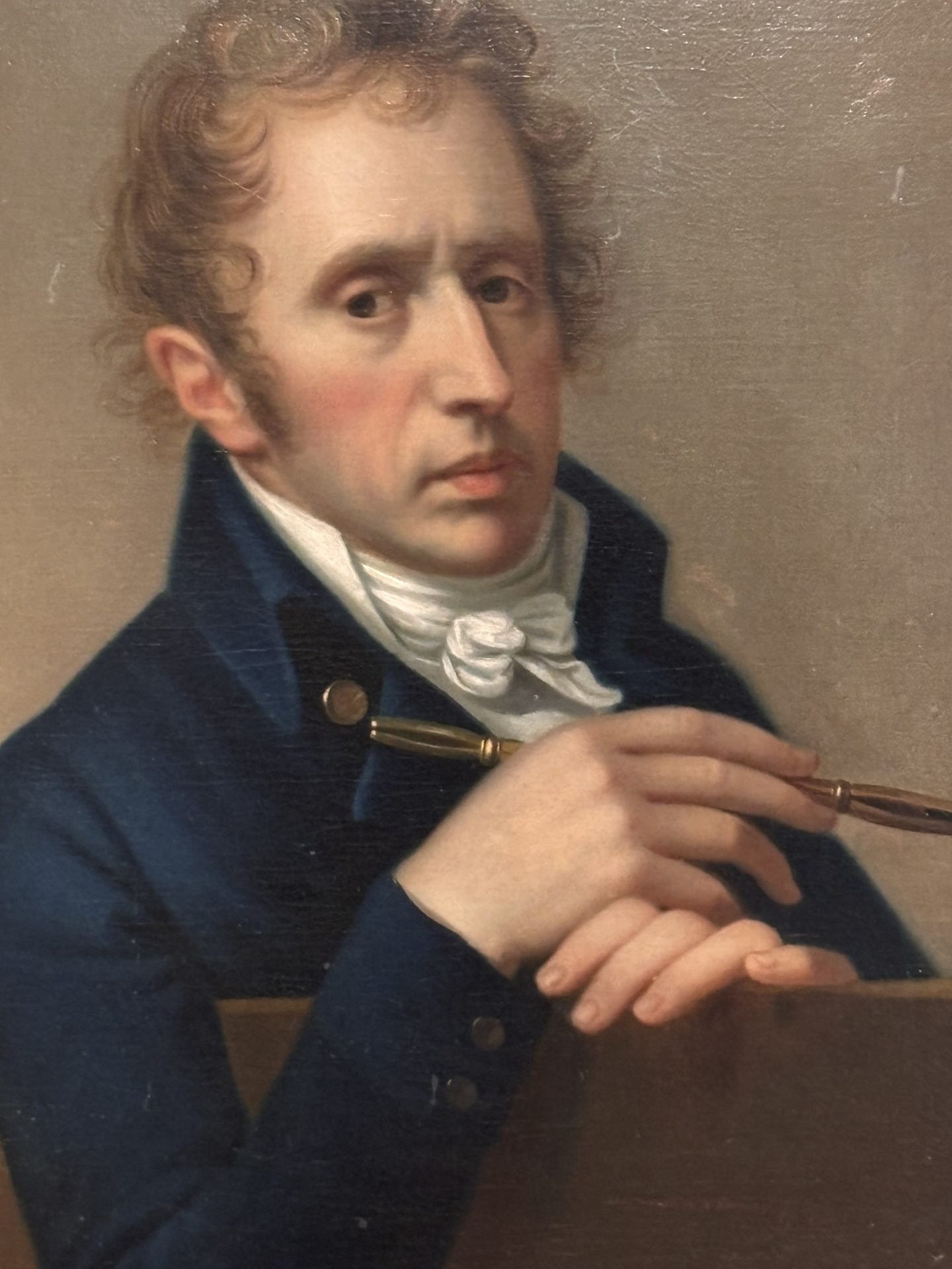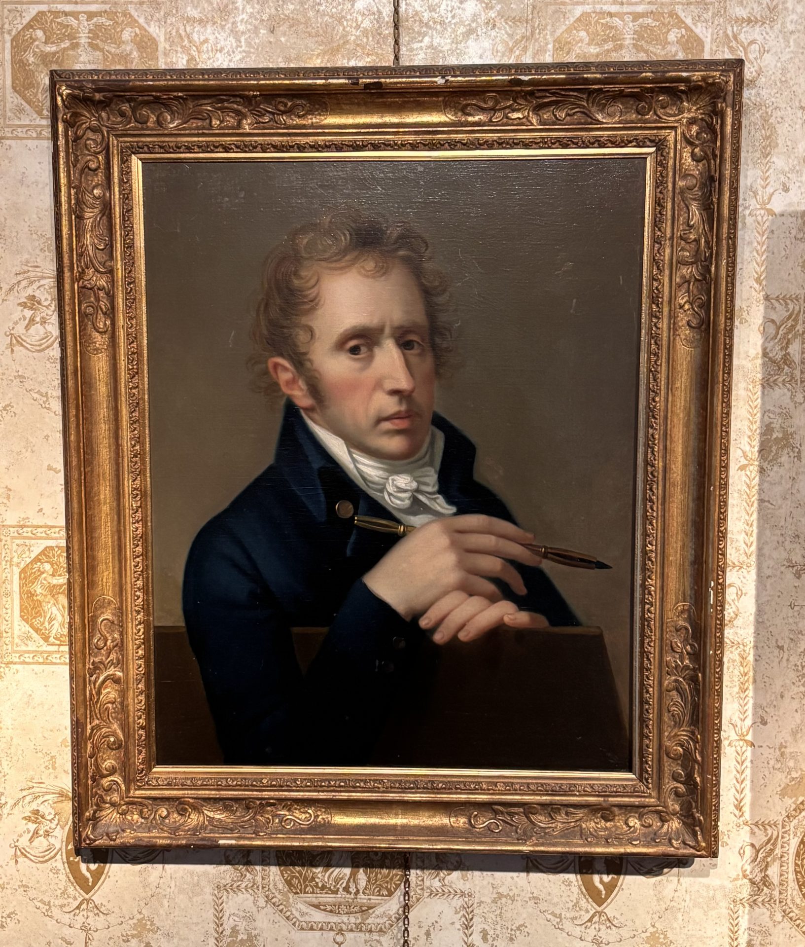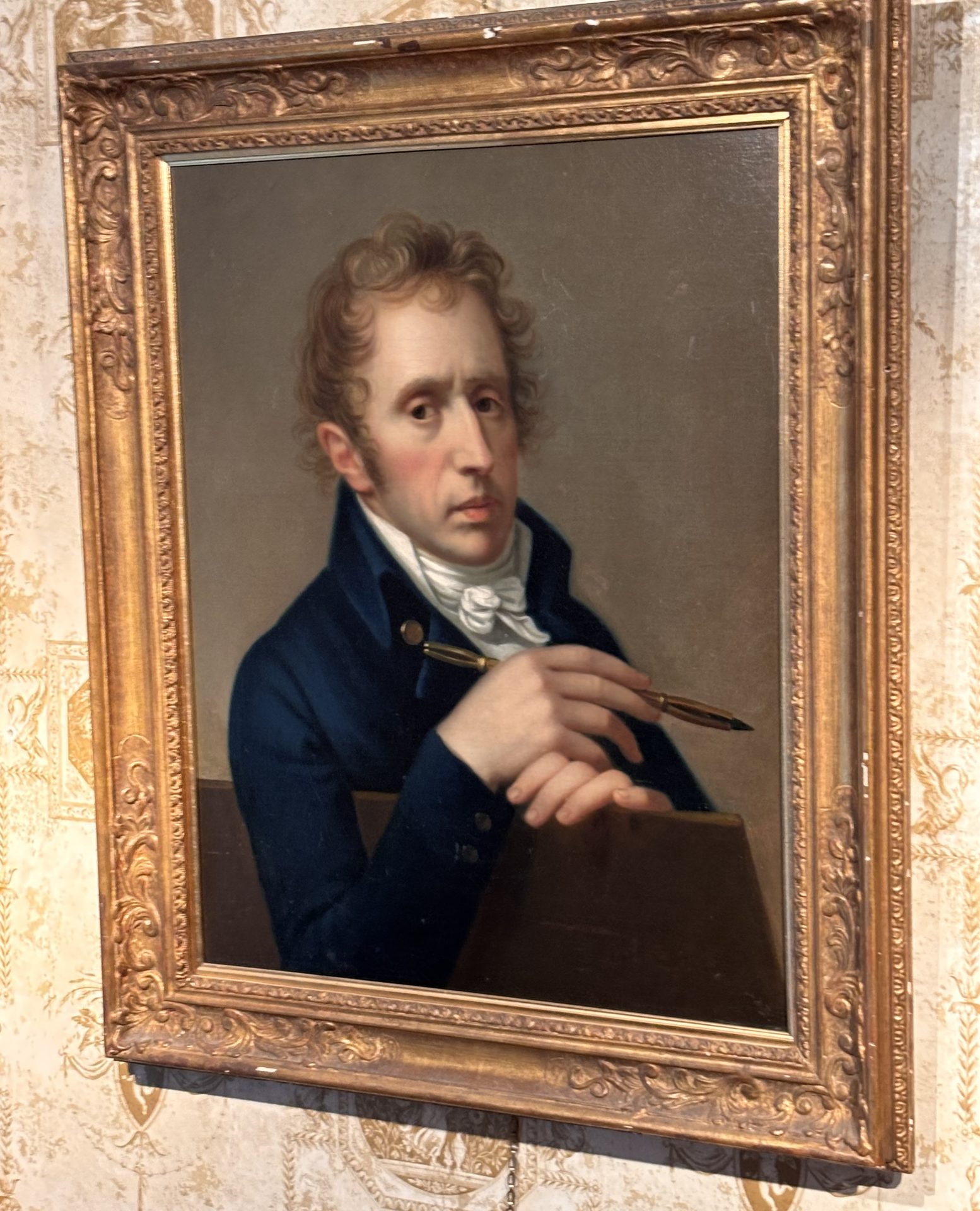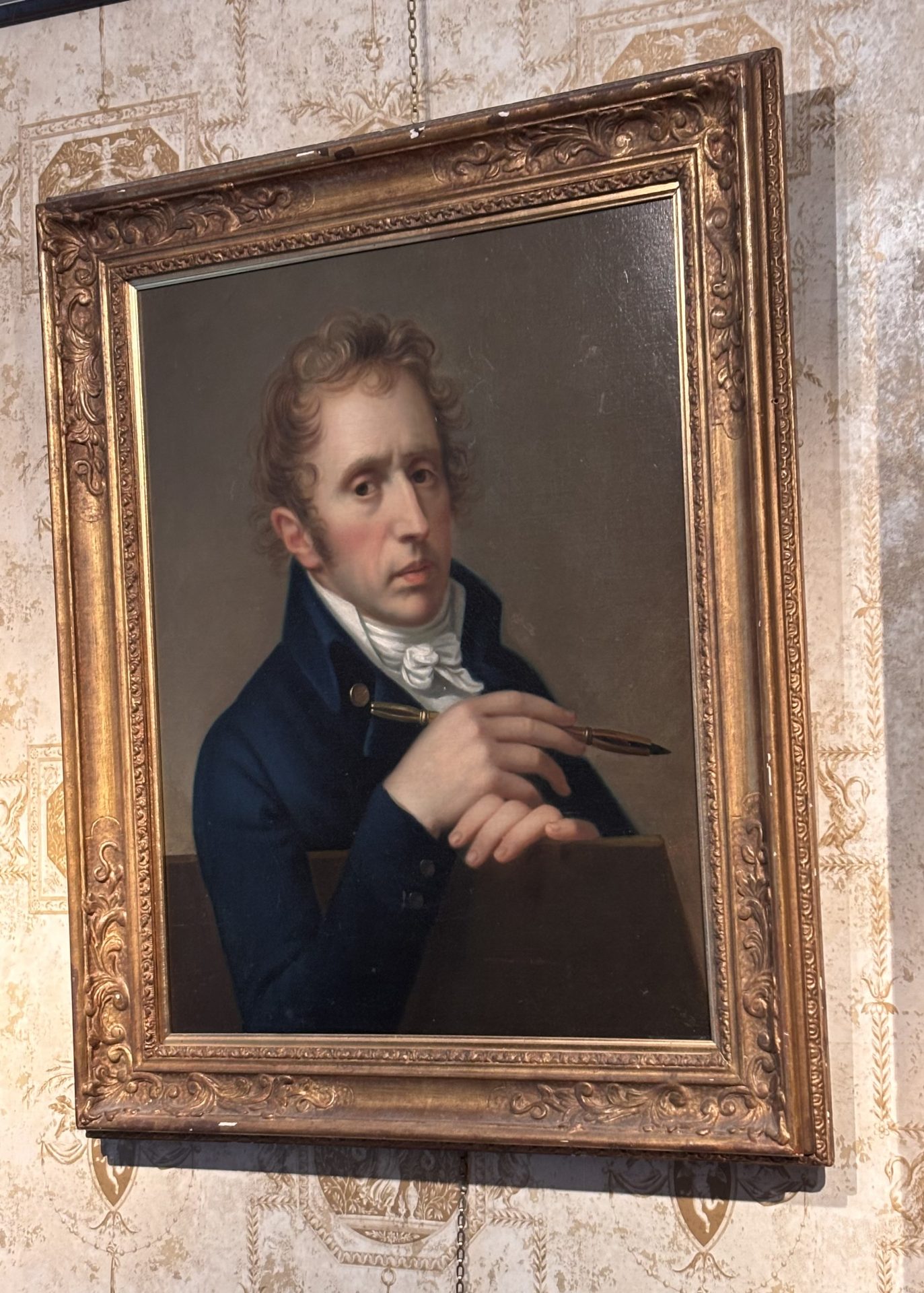 French 19 Century Portrait of a Scholar, Poet or a Writer Holding a Pen