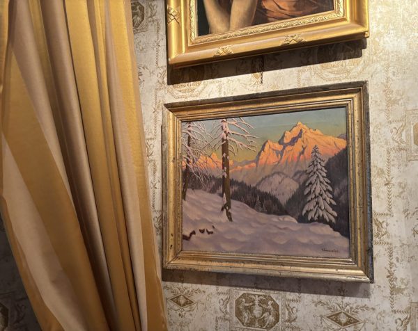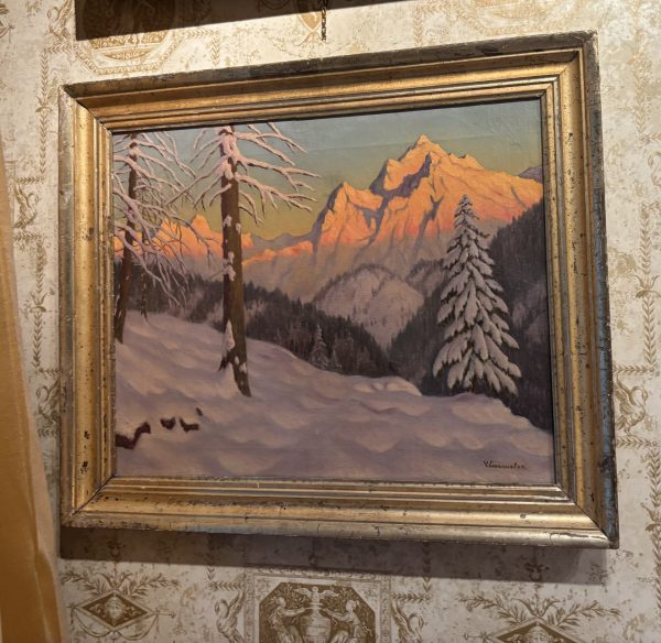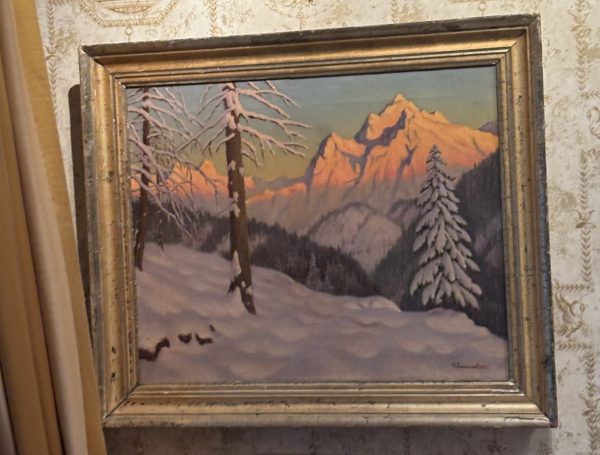 An oil painting on canvas of the Austrian/German alps signed Emanulov.. Provenance: Cooling Gallery of London label on reverse.