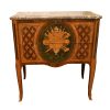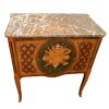 French 18 Century Louis XVI Transitional Marble Topped Marquetry Commode