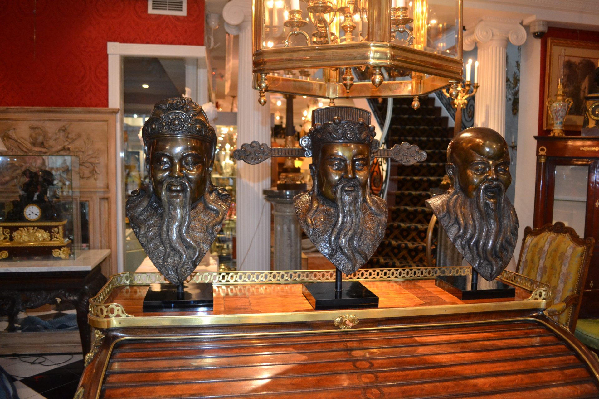 Rare Early 20 Century Bronze Busts of Three Chinese Deities Fu, Lu, Shou (福禄寿)